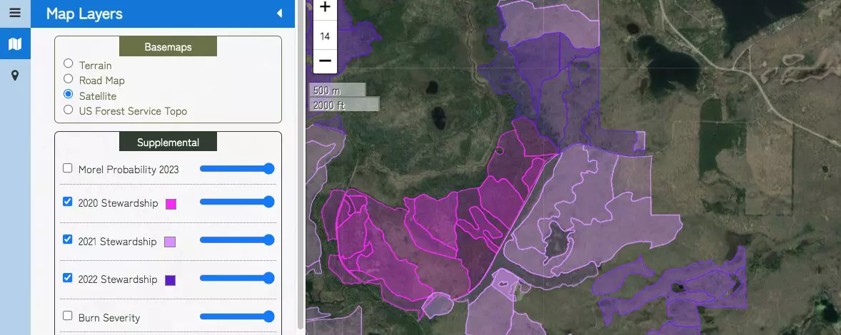 Our forest disturbance (Stewardship) maps are part of our overall burn morel mapping project and are available to all our members.