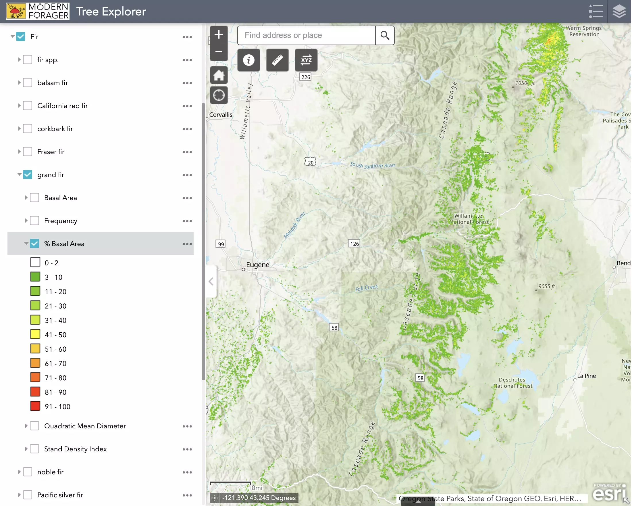 In order to find the mushrooms you seek, you need to consult the trees. Natural morels in Oregon’s Cascade Mountains love to grow with grand firs for example (and also Douglas firs which are more widespread). Wouldn’t it be nice to know where the range of grand firs in the Cascades?
